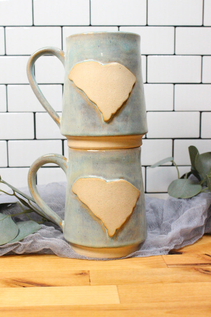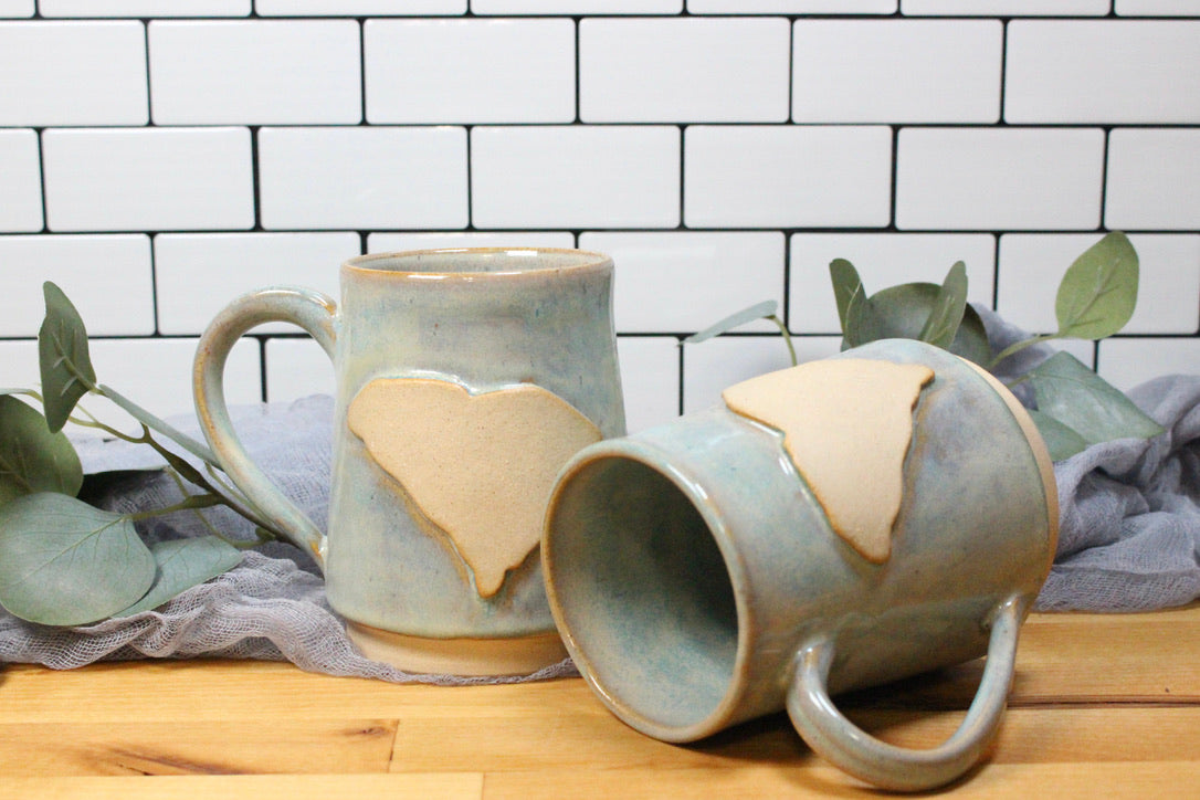 All of our mugs are handcrafted, wheel thrown from high quality stoneware clay. Our mugs consist of hand-pulled handles that contribute to the uniqueness and character of each mug. After their final firing, our hand glazed mugs are now dishwasher, microwave and oven safe!