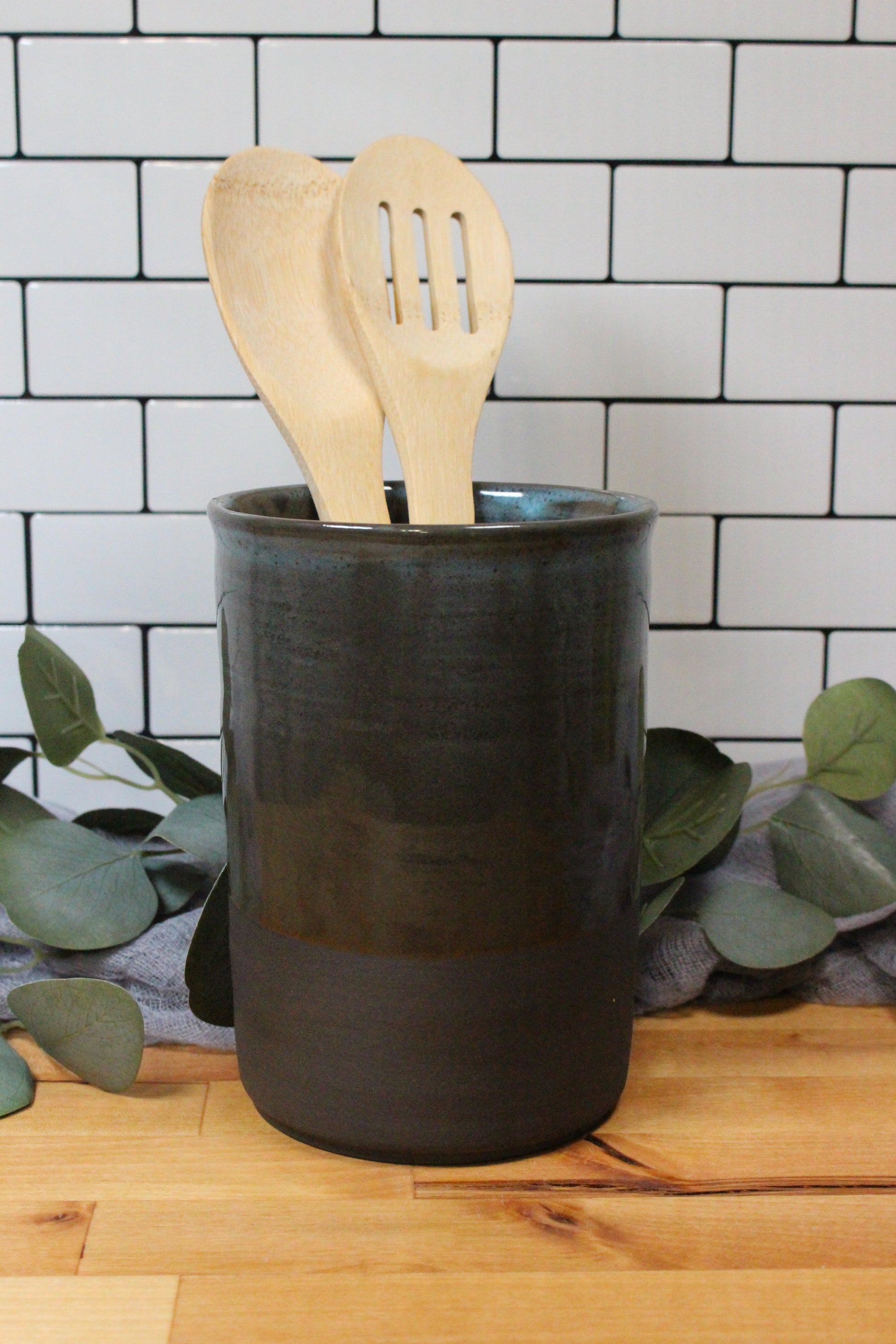 The Faded Norris Utensil Holder is a handmade, high quality stoneware piece that adds style and class to any kitchen. Crafted with durable stoneware material, this product ensures a lifetime of use with its long-lasting construction and dependable performance.