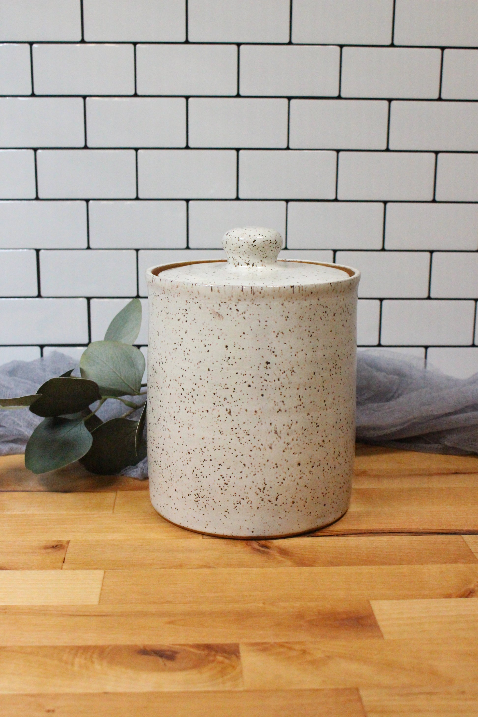 Introducing The Glacier Canister, a stylish, handmade stoneware canister designed to keep your kitchen goods safe and secure. This beautiful, high quality canister is perfect for creating an organized kitchen, while adding a hint of sophistication. Enjoy!