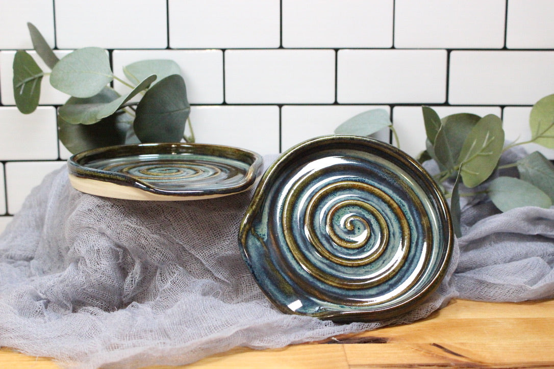 Make cooking a little easier with The Rainforest Spoon Rest. Handmade from high quality stoneware, this convenient kitchen accessory will catch drips, save countertop mess and even brighten up your kitchen. Enjoy the utility of a great functional accessory while adding a touch of style to your kitchen.